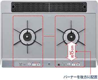 コンロの操作部を左右それぞれのバーナーの正面に
